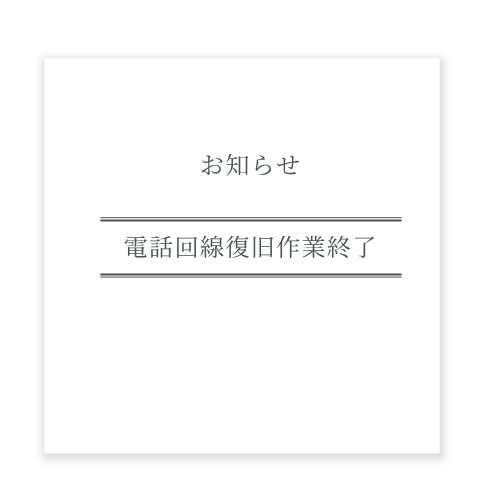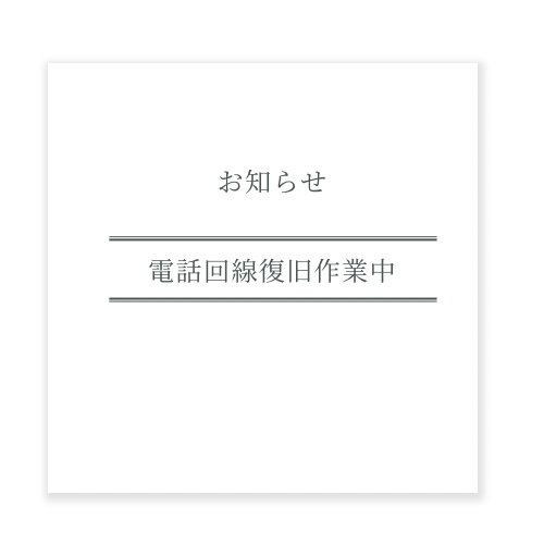 ただいま弊社電話回線の故障によりお電話をお受けすることができない状態となっております。 復旧に向け作業しておりますが、開通の見込みが立っていないためお急ぎのお客様はメールにてご連絡くださいますようお願い申し上げます。 E […]